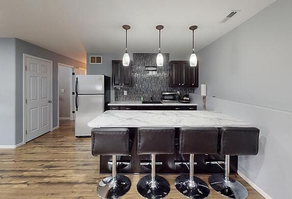 3426 Bay Shore Bend SE - $2500 | Deposit $2500 - This stunning 4 bedroom 3 bathroom single family home is nestled in a desirable neighborhood in SouthEast Mandan. Walk into a split level entry with coat closet and access to the oversized garage. Upstairs you will find a stunning open concept living, dining, and kitchen area great for entertaining. The primary suite in this home is just what you need after a long day! The first bedroom is right next to the full bathroom featuring a ton of storage and tub! Downstairs is your main entertaining area with an oversized living room and a wetbar! There are 2 more bedrooms downstairs that are both ample sized and offer great sized closets. There is another full bathroom with standing shower in the basement. The washer and dryer are included in the utility room. Resident is responsible for all utilities, lawn care, and snow removal.