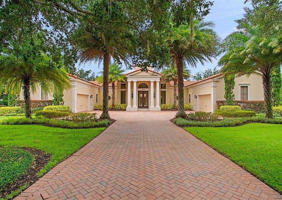 An exceptional estate, masterfully renovated and transformed into a reimagined showplace: complete with a brand-new exquisite chef’s kitchen, family room, and bar with glass enclosed wine rack – plus mammoth private swimming pool and spa with new decking and checkerboard synthetic turf with multiple sitting venues. Featured on CNBC as “most sought-after floor plan,” this masterpiece residence impresses with 30-foot-tall ceilings, tongue and grove with wooden beams overhead, and a wall of windows to greet guests on entry. The spectacular home surrounds the pool area with three bedrooms all ensuite plus den and flex space for a gym in the main residence and a two-story attached building with renovated 4th bedroom or mother-in-law suite and bonus space, offering detached privacy but still within the confines of the residence, connected by breezeway. The family room, bar, and kitchen are all brand new with top-of-the-line Thermador appliances including a Pro Harmony® 48-inch-wide gas range with 6 burners and griddle, built in microwave and oven, refrigerator, double dishwashers, walk-in pantry, island, quartz counters and back splash. The just-completed impressive bar with beverage cooler, wine bottle display, sink and built-in shelving is a showstopper. The distinguished primary retreat and office encompass an entire wing with an oversized bedroom, grand bath with double vanities, jetted tub, tile-enclosed shower, wet bar, walk-in closet, and den with built-in display shelving. A formal dining room is elegantly appointed and perfectly suited for entertaining. For a more casual setting enjoy dining alfresco on the patio with the newly added summer kitchen with louvered pergola off the family room. Expansive grounds take full advantage of the 1-acre lot size. A 4-car garage plus a sizeable paver drive with ample parking affords space for all. Gated Chaine du Lac is known for its generously sized lots and is conveniently located within biking distance to Windermere Elementary. Downtown Windermere offers quaint shopping, an idyllic town hall, monthly food trucks, and weekly Farmer’s Market. Neighborhood also offers easy access to Windermere Prep, Winter Garden Village, the 429, and Florida’s Turnpike.