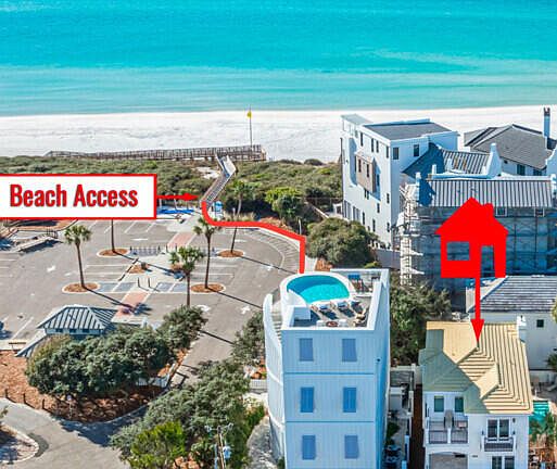 Welcome to ''Chasing Seagulls'', a 6 bedroom 5 bath. Located on the south side of 30A, at 3426 East 30A, No streets to cross to the beach, exceptional location near the Santa Clara Rd beach access allows for forever beach access. Whether your looking for your primary residence, secondary home, or active short term vacation rental, this home will please!3 Story construction, with heated pool, multiple decks on both the east and south sides of the home. The first level features a large multi use/bedroom, which currently features 2 king beds, and a queen bunk bed. Additional king bedroom on the first level. As well as full sized kitchen/dining/living room that leads out poolside.The second story features another full sized kitchen, dining, and living area. An additional king bedroom as well as laundry area complete this level.