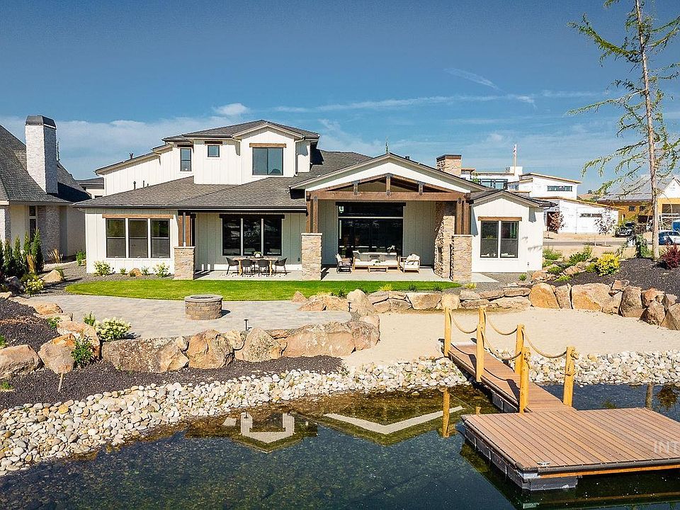 Be the first to own a gorgeous true EAST facing backyard waterfront home in the new community of Terra View-complete with your private beach & your own dock! Be prepared as soon as you enter to take in the spectacular views & guaranteed beautiful Idaho sunrises! Entertain in your spacious great room that opens out to a sizable covered patio with your outdoor fireplace for the perfect ambiance. On the cooler nights, enjoy your favorite beverage sitting around the fire pit as you gaze out over the water & take in more of the beautiful views. Spend those special occasions gathered in your gourmet kitchen with an oversized island, Sub-Zero & Wolf appliances & butler's pantry. Master suite with views of the water, mountains & water feature is a space to relax or take a retreat in your spa-like master bath. The 3 addt'l bedrooms all have their own bathrooms. PLUS an office/flex room, a large upstairs family room with wet bar & beverage fridge & a 45' RV Bay are notable comforts that make this home an indulgence.