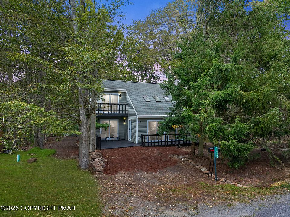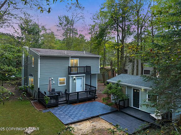 PRIMOSE RENOVATED CONTEMPORARY Completely Renovated 3BR 2 Full Bath Contemporary Home Features Vaulted Ceilings, Partially New Roof, Upgraded Crawl Space, BONUS Exterior Finished Game Room or Guest Quarters on Flat Backyard Ideal for Entertaining Guests in Pocono Mountains Gated Lake Community w/ Amenities Galore! STR-Friendly Community! Walking Distance to Lake Carobeth on Main Gate Section! Open Layout Modern Upgraded Kitchen & Dining Area to Large Spacious Living Room, Wood-Burning Fireplace, New Luxe Vinyl Plank Flooring Throughout, New Double Pane Windows & Sliders Throughout Plus Convenient 1st Floor Bedroom & Main Bath w/ Walk-In Black Tile Shower! Upstairs Features 2 Additional Generous Sized Bedrooms & Full 2nd Tiled Bath w/ Private Balcony Overlooking Backyard! Outdoor Deck, Patio Area, Separate Guest Quarters & Fire Pit Area Perfect for Gatherings! A POCONO COUNTRY PLACE is a Gated Poconos Lake Community Offering 3 Clubhouses, 2 Lakes, 6 Basketball Courts, 6 Tennis Courts, 6 Playgrounds, 4 Pools, Miniature Golf, Beach, Kayaking/Canoeing, Dog Park & More! Located Near All Major Poconos Attractions & Close to All Shopping! Public Water & Public Sewer! Call Today for Your Private Showing! **Please note furnishings are included however some photos have been 'Virtually Staged' for marketing purposes.