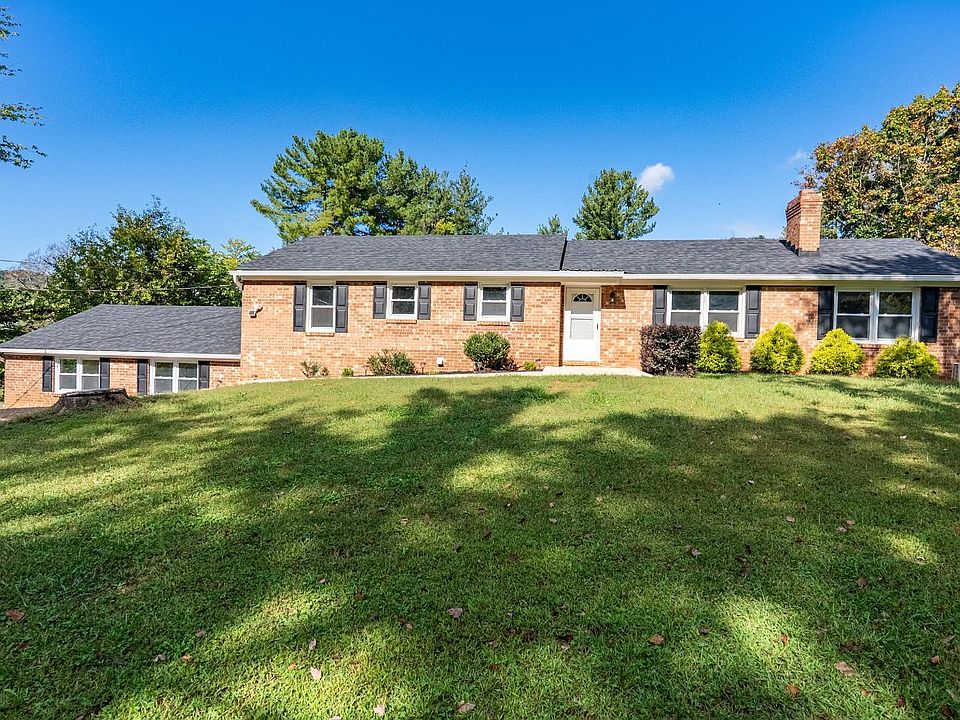 Nestled at the foothills of Long Mountain, this elegantly updated brick rambler features four generous bedrooms and three bathrooms. Home is completely move in ready and will continue to have low-maintenance in the future, with a brick exterior, a brand-new roof, fresh interior paint, and durable LVP flooring. The modern kitchen showcases white cabinetry, granite countertops, and stainless steel appliances. There is a huge walk in pantry, off the kitchen, which could be utilized as a home office. While the primary suite offers a luxurious en-suite bathroom, complete with a tiled shower. The living room and dens on the upper and lower levels, provide ample space for entertainment and relaxation. The property also includes three garage spaces, a paved driveway, side deck, and rear patio. Property is situated in a convenient location, just two miles from Rustburg High School! An open house is scheduled for this Sunday, 2:00 PM to 4:00 PM. Come on by and check this spacious home out!