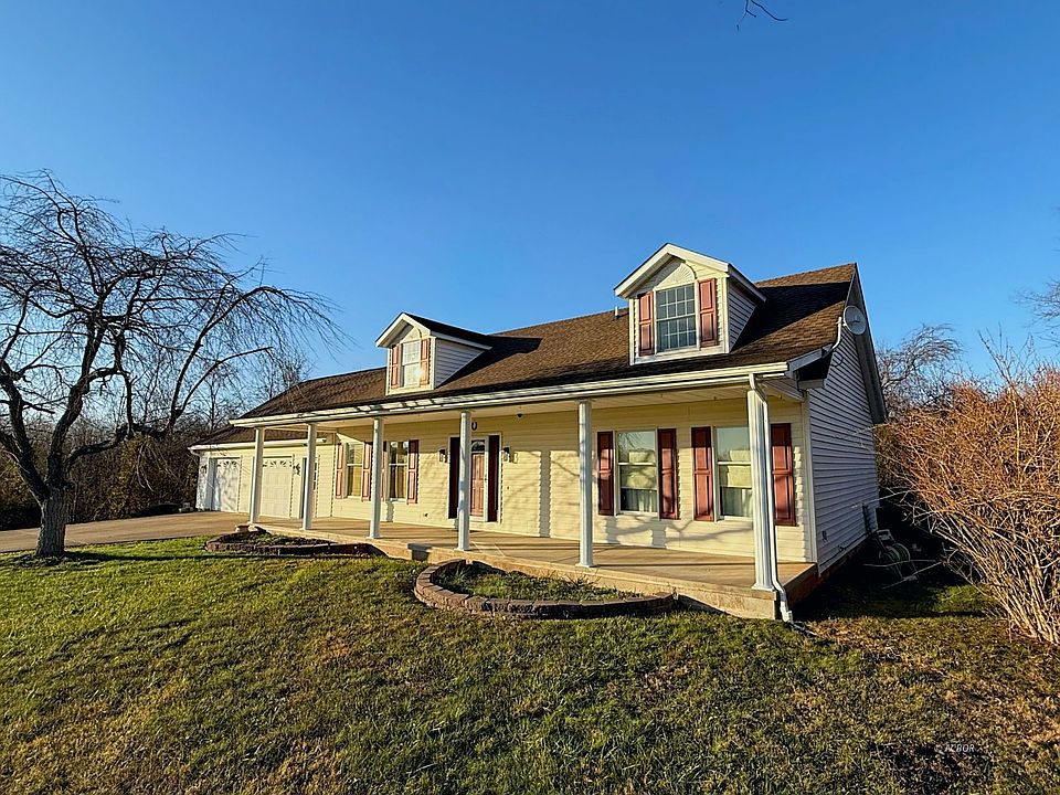 Spacious Cape Cod on 2.15 Acres, 3 Bedroom 3 Full Baths. This spacious Cape Cod home on 2.15 acres is back from dead end road allowing for both privacy and plenty of usable land as well as a beautiful view from the rear of the house. A ground level patio at the rear as well. Located in a well established rural sub-division with privacy between neighboring homes.The 3 bedrooms are very spacious as well as a bedroom on the main floor which has an on suite full bath attached. There are two additional full bathrooms, one next to the mud room as well as a full bath on the second floor. Not to forget the office on the first floor with closable french doors with glass. A second floor loft relatively large open are for family use recreation area or another office space. A covered front porch with a concrete, no maintenance floor is the length of front the home enhancinh the elegance of this Cape Cod home and its a phenomenal hang out place to relax, drink coffee or just rock in a chair or porch swing and chill. There is a modest size mud room and laundry room both off the very oversized garage that can accommodate up to 4 cars or two cars and lots of storage including the a rare large full height storage above the garage with plywood floors.