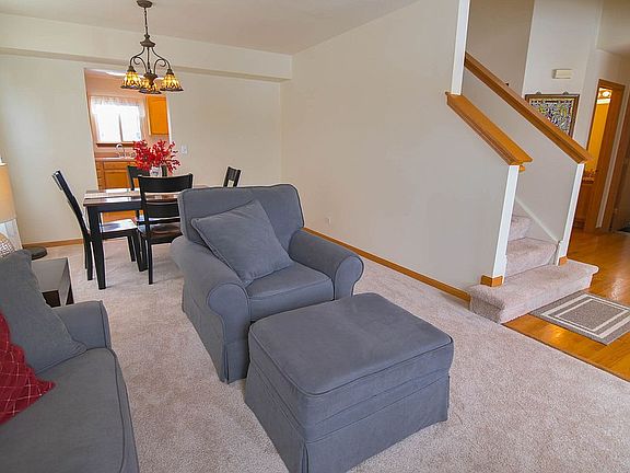 Welcome home! This ideal starter home is ready to move right in and just relax. A spacious foyer with adjoining Living Room is perfect for welcoming your friends and family when they come by to see your beautiful new home. Feel the warmth and comfort of the cozy Family Room featuring the stylish fireplace with oak mantle and large windows filling the whole space with natural light and backyard views. Start your day with a cup of joe and a perfect breakfast in your spacious Kitchen with a beautiful view of the backyard. The Kitchen features beautiful maple cabinets and hardwood floors that flow through to the foyer. The open design with adjoining Family Room keeps everyone connected while providing ample space for entertaining. The Formal Dining Room and Living Room are also connected so you can enjoy both intimate meals or expand as needed for larger gatherings. From the Kitchen sliders with built in blinds, step out to your private, fenced backyard with a lovely brick patio. Just the spot to enjoy your favorite beverage on a warm summer day. Your spacious Master Suite features a superb walk-in closet, and private bath with dual vanities and great natural light, your oasis to enjoy. Two additional bedrooms and a second full bath round out the second floor providing great space for those starting out or in need of a third bedroom. Need more space, a full basement with 9 ft ceilings is your blank canvas to finish as you dream. Build some classic sweat equity right away. Basement has a sub-in for a full bath if you desire. Adaptable right away for a home office with the industrial vibe. Attend your favorite zoom meeting right here! Prairie Point is a great subdivision with Big Hollow and Grant High School. Home is perfectly placed across from a neighborhood park! Make the call and come see this rare delight.