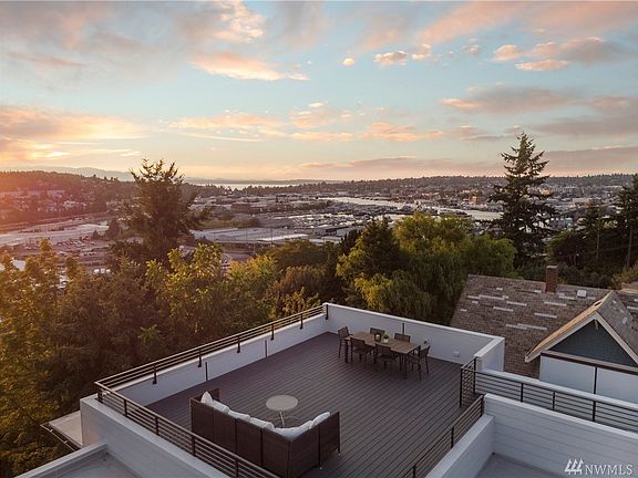 Queen Anne New Construction! Scandinavian-inspired 5 br, 3.5 BA modern home w/ Sound, mtn, & territorial views! Designed with minimalist style elements, large open living spaces & incredible rooftop deck. Main level offers an entertainment-friendly floorplan, full height windows, mudroom & access to 2-car garage. Upper level presents master bed/bath, +3 add'l BRs & BA. Lower level includes a family room, spacious BR & BA. Near shops, pubs, restaurants, parks. Easy commute to SLU, Expedia, & DT