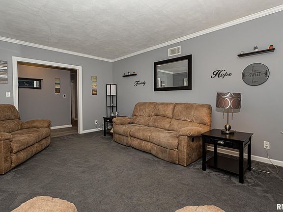 Beautiful 4 bedroom, ranch style home located in a cul de sac in Rock Island. Completely remodeled kitchen in 2021 includes new windows, French doors, slider to deck, luxury vinyl flooring, gas insert fireplace, and new stone to surround the fireplace. Custom built cabinets that feature soft close doors and drawers. The fully finished basement offers a custom built wet bar, pool table, and ping pong table to stay, perfect for entertaining! Heated 2 car garage! Walk through the 3 seasons porch that leads you into an inviting fenced in backyard that has a large custom built deck and pergola. Other updates per owner include: New roof 2020, new gutters 2022, new carpet in living room 2019, new driveway 2023, new garage door opener 2022. Living room, basement, and dining room furniture negotiable.