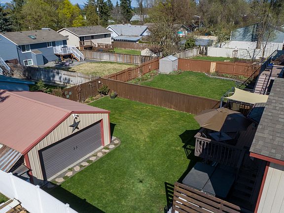 Updated and well cared for home in the heart of the South Hill with a 24' x 20' shop! Three legal bedrooms, all upstairs, including an updated primary bath with dual vanity and tile shower. The main floor has beautiful hardwood flooring with custom tile inlays throughout, a gas fireplace, and granite countertops and stainless appliances in the kitchen. The dining room opens to a spacious elevated deck and lower patio area, totaling almost 450 sf of additional entertaining space. Behind the attached garage is a flexible mud room/office/landing zone (or potential 4th bedroom) with an updated 1/2 bath & laundry room within. New carpeting throughout the daylight basement, which features a split living room with a new pellet stove and even more storage. BONUS** 480sf shop with additional loft storage and a chicken run behind it - could be used as your workshop, cave or a future ADU! Centrally located near shopping, eateries and schools, let your imagination run wild in this total package of a home!
