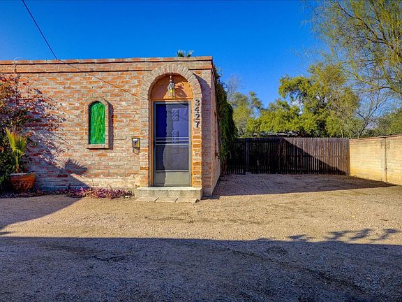 Welcome Home! Come see this beautiful and quaint home! Open floor plan from the living area to dining to kitchen with glass sliding doors leading to a private back yard, Original brick and stained glass arched windows give this home a cozy feeling and style! Large picture window above the sink for that extra lighting. Master bedroom has new vinyl plank flooring with sliding glass doors leading to the back yard as well. Large bathroom with walk in shower. The back patio has a large ramada to get out of the sun and for entertainment! Large yard surrounding ramada with citrus trees and privacy. This home is a must see! Pets are upon owner approval!