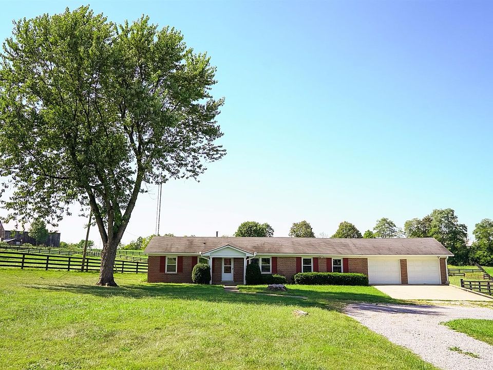 Check out this beautiful little farm conveniently located halfway between Lexington and Georgetown. While still in Fayette County this farm features 10 luscious acres of pasture ready for your favorite horses or livestock. The property has a wood barn that has been recently painted with 8 stalls & workshop attached. The whole property has wood plank fencing that also has been recently painted. The house is a 3 bedroom, 2 full bath ranch with refinished hardwood floors, an extra large carpeted den as a bonus room, and an oversized 2 car attached garage.
