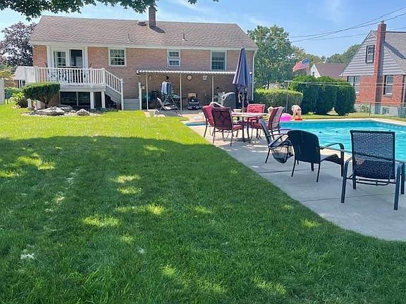 Welcome to family fun central! From the spacious lower level rec room with custom bar to the gorgeous backyard oasis complete with covered patio, elevated deck and inground pool - there is room for all your family and friends to share in the festivities. Once a 3Bedroom home - it is currently set up as a 2BR, but easy to convert back. Custom carpentry work, replacement windows, upgraded heating system, Corian in kitchen and bath and beautiful hardwood floors under carpets (some has been exposed). A well maintained brick single in a quiet neighborhood with mature trees.