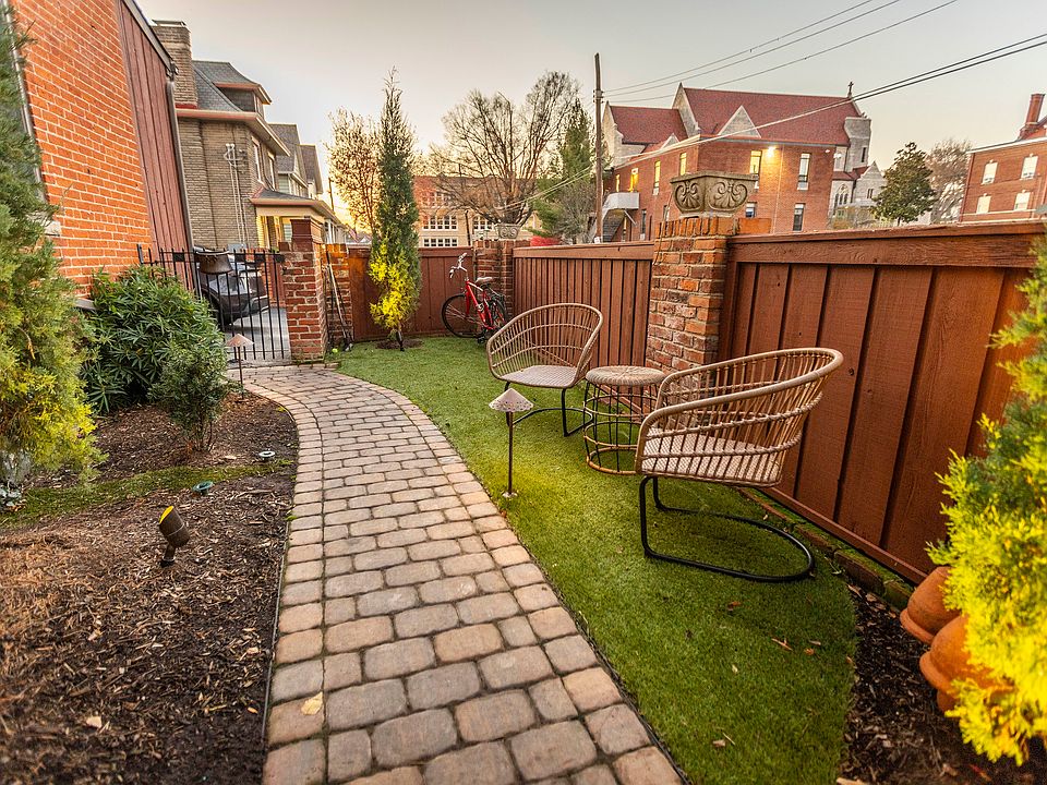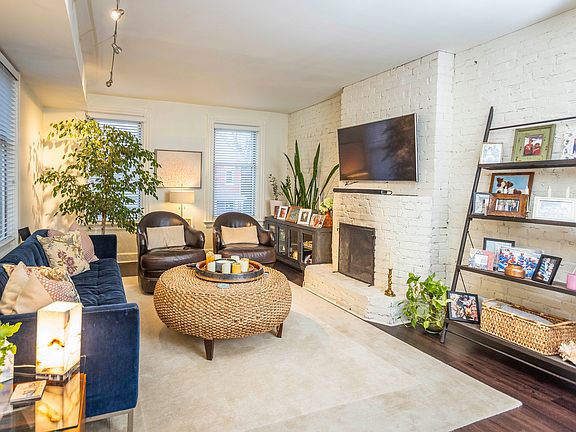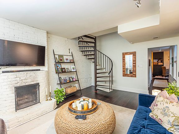 Experience boutique living in this exceptional two-bedroom, two full-bath residence - one of only two units in the entire building. This rare offering provides privacy and distinctive charm. The home showcases exposed brick and a striking winding staircase that elegantly connects the two levels, creating a unique layout. Thoughtful updates enhance the space, including modern appliances, a dedicated laundry room, private upper deck, and an additional courtyard patio ideal for relaxation or entertaining. A working fireplace adds warmth and character, making the living area feel especially inviting. Parking is effortless with a designated driveway space and additional off-street options. This one-of-a-kind home blends comfort, style, and exclusivity an opportunity not to be missed!