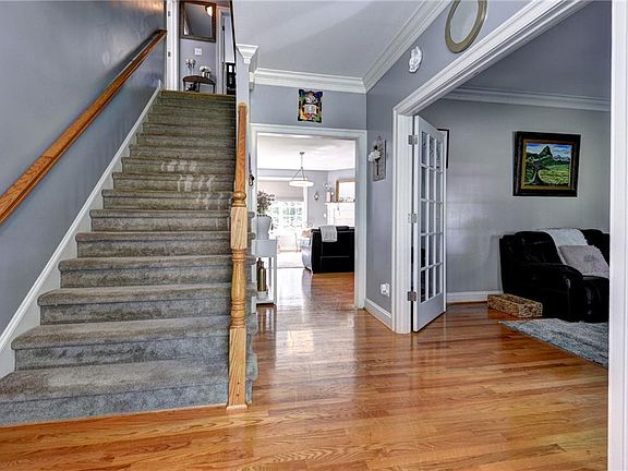 Welcome to this inviting farmhouse-style home on over half an acre with no HOA. The light-filled floor plan features a spacious kitchen with granite counters, a large island, and stainless appliances, opening to a sunny dining area and family room with a cozy gas fireplace. French doors lead to a versatile room that can serve as a home office or formal living space. Upstairs, the primary suite includes a spa-like bath and walk-in closet. With plenty of storage and front and back porches made for relaxing, this home combines timeless farmhouse character with modern comfort. Set on a large, open lot offering privacy and space, yet convenient to schools, shopping, and I-64.
