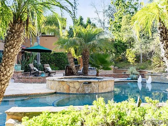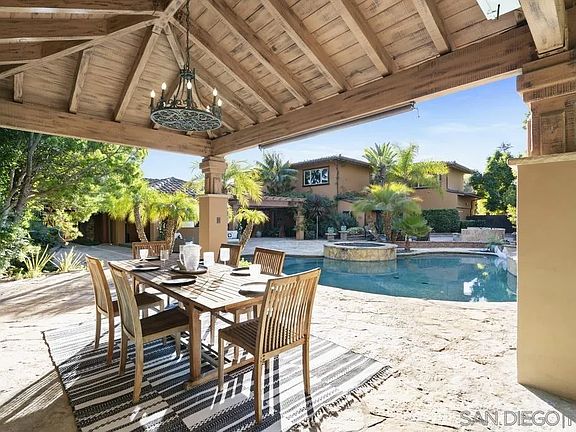 A rare and secluded tranquil paradise in this private compound estate surrounded by breathtaking views, and the ultimate in privacy! This is simply like no other situated on 2.1 usable acres in Olivenhain’s equestrian zoned Double LL Ranch, with 30+ miles of riding/hiking trails. Truly a one-of-a-kind custom estate commences with a long tree-lined driveway leading to a grand approach that in this beautiful & fully upgraded 5 Bedroom, 5.5 bath, smart home and has a spacious 1st floor ensuite, plus a very charming and private detached casita with its own yard. The upstairs primary bedroom suite offers a perfectly picturesque escape complete with massive walk-in closet, spa-like bath, romantic dual-side fireplace, and beautiful mountain views. California lifestyle at its finest offers a truly optimal layout for embracing the open floor plan providing spacious living, dining, and family rooms, 4 fireplaces, open entertainer's kitchen with large chef's island, breakfast bar, state-of-the-art Wolf & Sub-Zero appliances, media room, separate gym Features include fully solar powered estate, 60 solar panels & backup 11-kW Generac generator, 26 camera security system. The large multiple outdoor entertainment areas are equipped w Enterprise networking system with outside theatre, firepit, fireplace, rose gardens. The outdoor kitchen is complete with media, pizza oven, resort pool/spa, cabana, golf putting range, true greenhouse, storage shed, and your very own vineyard, all in an eco-friendly landscape.