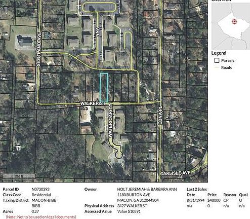 Incredible residential development opportunity on this beautiful lot in the heart of Macon. Conveniently located near I-75, Mercer University, Downtown Area w/ loads of shops, restaurants & shopping, not to mention the new 100 million dollar+ amphitheater development. Zoned R-2A, which allows for both single family & multi-family. All public utilities available for this lot including electric, water & public sewer. R-2A zoning allows for the following: minimum lot area 9,000 sq. ft., minimum lot width 75 ft., maximum lot coverage 35%, maximum build height 35 ft. Wooded lot and some clearing is involved but this lot is ready for your own personal touches. Great opportunity for personal residence or investment. For additional information on lot please see Bibb County GIS & Municode. Public data was used to source information posted in the listing. Be sure to look at the media tab for additional documents. Utility information as provided by the seller and should be verified by the buyer during due diligence.