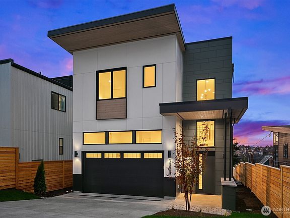 Perched atop North Queen Anne, this Thomas James Home blends thoughtful design with everyday beauty. Soaring ceilings and expansive east-west windows invite natural light and offer unobstructed west-facing views from the main level. Primary suite showcases even more stunning vistas of Salmon Bay, Shilshole, and Elliott Bay. Modern architecture pairs timeless finishes with a gourmet kitchen featuring gas cooking, plus a two-car garage, mudroom, and pantry entry for effortless living. The lower level includes a private-entry MIL/ADU, great for rental income, multi-gen living, rec room, or a flexible office. Steps from parks, waterfront trails, shops, and with easy access to downtown, SLU, and major employers. Now move in ready!