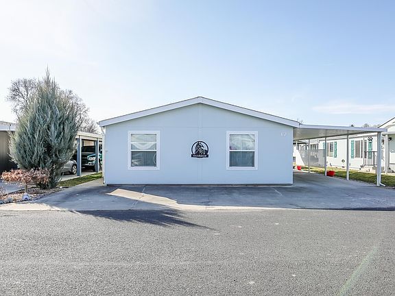 JUST LISTED 3 bed 2 bath home in +55 community. Covered parking for 2 cars and a utility shed. Large kitchen with walk in pantry. New Luxury Laminate installed in the kitchen, dining room, & laundry area. This home is very well cared for and clean. Vaulted ceilings throughout with ample amounts of natural lighting. Seller has lower tax credit which will transfer to new owner (circuit breaker) for the next tax year. Park fee $485 covers w/s/g and landscaping monthly. Clubhouse located at the West end of the park. Clubhouse features potlucks every month. Can be reserved for private member events. Pool table, games, and card games every week. All appliances included with the sale of home.