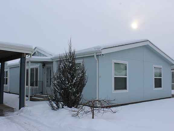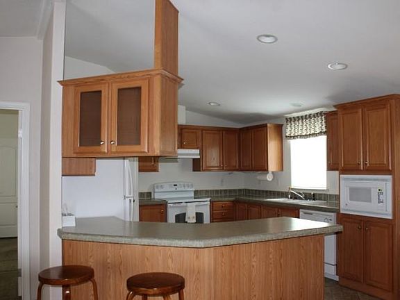 IMMACULATE MANUFACTURED HOME IN RENTED PARK SPACE #17. Year built 2007, it is immaculate! Very nice easy flow floor plan with counter eating space in kitchen plus a separate dining room area off kitchen. Laundry ROOM, with bathroom off of it. Large master suite with soaking tub and step in shower and double vanities. Covered one car carport, matching storage shed off covered carport. Main entry on East side of house, more parking in front of house. RV Parking available to Court residents.