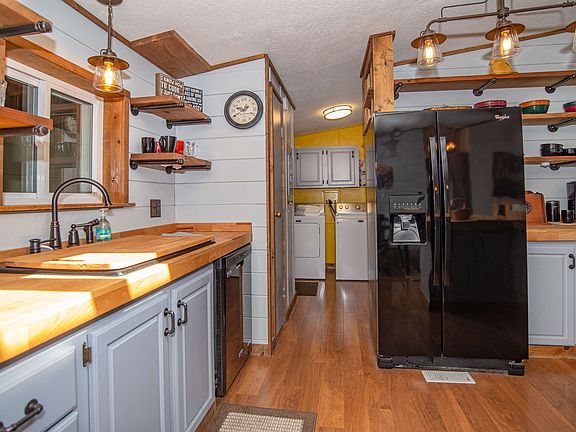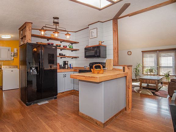 This stunning updated home comes with a spacious over 500 SQFT shop big enough to store up to 3 cars. It also features new gutters, furnace, heat pump, vinyl windows, and roof. So many indoor upgrades as well such as the butcher block counters, Restoration Hardware, Edison lighting, shiplap walls, updated paint and floors. All appliances stay including the Maytag washer and dryer. The oversized covered deck on the back faces a gorgeous field for those peaceful evenings of relaxation, and watching the wildlife trail through. The home is located near a private clubhouse, golf course, picnic area, extra parking area, and much more provided by the park. Schedule your showing today you won't be disappointed.