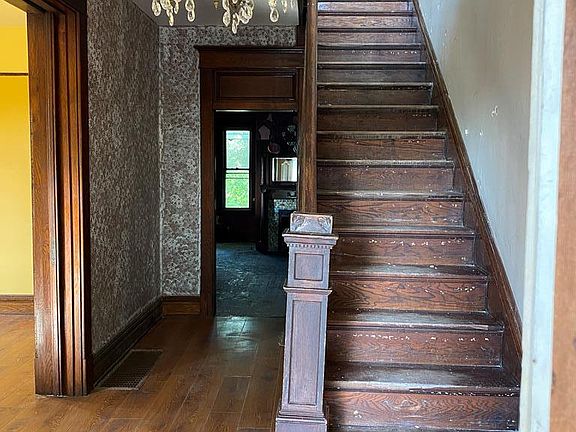 Country living but minutes from town. Loads of charm left in this home as it features large rooms, beautiful woodwork and sits on a little over 4 acres of ground with a pond. Property in need of major renovations. However, possibilities are endless. Recent appraisal shows property could be valued at $215,000 after repairs/renovations.