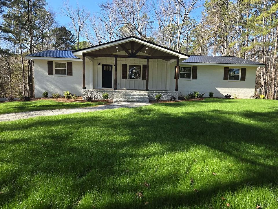 Welcome to this beautifully renovated brick home offering 2,050 heated and finished square feet of stylish living space, perfectly situated on 4 private acres. Enjoy peaceful mornings on the 24x10 covered front porch featuring a stunning tongue-and-groove pine ceiling, and unwind in the evenings on the 12x16 covered rear deck overlooking a large, private backyard with freshly cleared land and new grass planted.