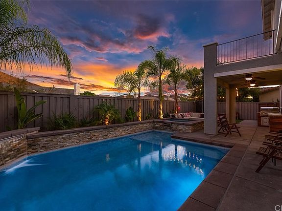 Stunning Pool Home in Canyon Hills! This 5 bedroom 3 bathroom home will check all the boxes! Upon entering the home you will find bamboo flooring, your living room as well as a family room and recently upgraded kitchen. The kitchen and family room with a beautiful fireplace and tons of lighting is the perfect place to entertain. The kitchen features granite countertops, stainless steel appliances, and white cabinets with an island for plenty of storage. Step out to your backyard which offers a beautiful pool and spa as well as a custom built BBQ island built from redwood which will allow the entertaining to continue outside. The main level also features a bedroom and bathroom, tile flooring and some plantation shutters. Upstairs is the master bedroom and bathroom as well as a walk out balcony. The 3 additional bedrooms are all a great size and share a double sink bathroom. The large laundry room has tons of cabinets for extra storage. You will find it is energy efficient with solar lease and a whole house fan. The community itself offers 3 pools, sports park, splash pad and plenty of biking and hiking trails to keep even the most active families busy. The home is walking distance to the local elementary and middle school. Homes like this do not last long in this awesome community so schedule your showing today!!!