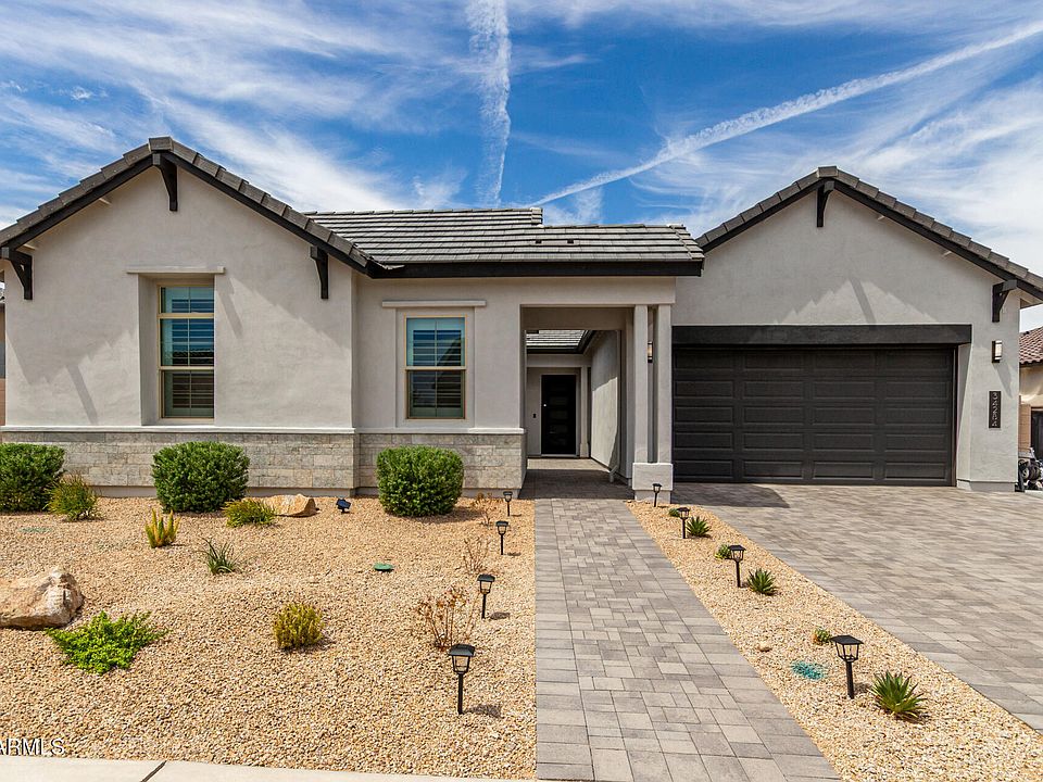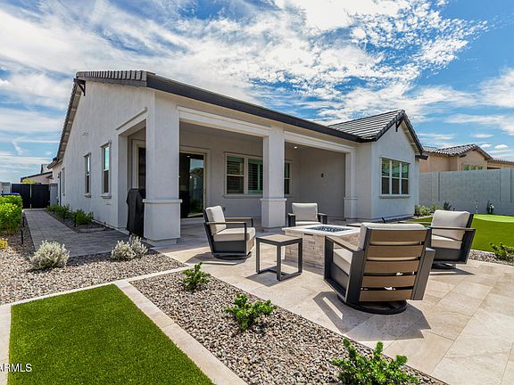 Luxury Living at its finest! This meticulously kept single level home provides an unparalleled living experience. As you enter, the brick paved driveway, stone accents on the home & front courtyard greets you. This well designed spacious floor plan starts with the stunning quartz waterfall island kitchen with upgraded Kitchen Aid SS appliance package with gas cooking for the culinary enthusiast, custom lighting & ceiling height shaker cabinets. 3 large bedrooms, den & huge flex/hobby room provides endless living options. The primary bath provides an escape with a lavish tiled walk in shower, matte black fixtures & incredible walk in closet. Plantation Shutters, laundry utility room with full cabinetry & utility sink leads you to the 3 car garage w/ epoxy coated floor & custom cabinets. The resort styled backyard provides mountain views, fully tiled fireplace conversation area, life-like artificial turf & custom putting green. This home will please the most discriminating buyer.
