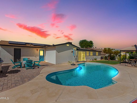 HEATED POOL! STUNNING NORTH PHOENIX HOME, NO HOA, WITH BACKYARD OASIS! This fully updated home features an open floor plan, 4 bedrooms (each fits a king bed), 2 bathrooms, bonus game room, 2-car garage, heated pool with Aqualink, paved fire pit area, separate storage room, putting green, and the BEST LOCATION in all of Phoenix! Tile and laminate flooring throughout (no carpet). The kitchen features stainless steel appliances with quartz and butcher block counter tops. The home is solar powered, and is conveniently located close to Paradise Valley, Kierland Commons, and Scottsdale Quarter. Easy access to the 51, only a 15-minute drive to the Mayo Clinic or the Sky Harbor Airport, and 20 minutes to Old Town Scottsdale. The primary bedroom hosts a pristine private bathroom with a floor-to-ceiling tiled shower. The entertainer's backyard features a putting green, a Ramada, multiple paver patios, a fire pit, and a sparkling blue pool. Everything you're looking for, you'll find it here!
