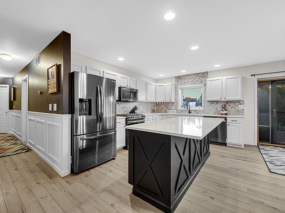 OWNERS 37.00 AVERAGE MONTHLY GAS BILL IS VERIFIED! INNOVATIVE CONCRETE FORM HOUSE HAS MANY BENEFITS THAT OUT PREFORM STANDARD CONSTRUCTION. The concrete 8-INCH-thick exterior walls extend from the basement to the roof promoting outstanding energy efficiency, sound dampening, severe weather resistance and pest prevention... yet the vinyl siding and stone facade add to curb appeal to match its performance! This 4-bedroom, 3 bath Open Concept bi level is truly as Distinctive as it is Unique! The beautiful culinary kitchen offers newer black stainless-steel appliances, quartz countertops, luxury herringbone backsplash and a spacious island lending versatile entertaining options - just in time for the upcoming holidays! The garage...there's not only room for your two cars, but there's also an expansive 16 x 23 ft section for your tools-tinkering-toys-or training area with durable laminate floor! Due to the concrete construction, THIS GARAGE stays about 50 degrees all winter long! This home is situated on 6/10 of an acre, has a 6' privacy fence for your fur babies safe play, and features a notable 2-step dog splash that duos as a koi pond option. Want more? The spacious primary bedroom with ensuite bath impresses with double bowl vanity, soaking tub and separate shower. There's a lower-level recreation room with pub seating, a full bath and a 4th bedroom lending flex space options for guests. The New Rolling Prairie School District has great ratings in the State! No HOA fees in Sand Ridge and everyone has room to roam on their country size lots. Private showings or public viewing possibilities. Act today.