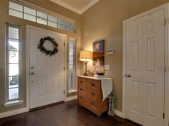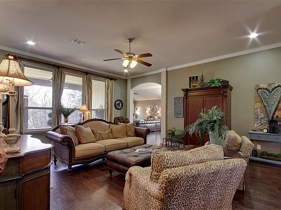 Absolutely stunning home backs up to the green belt!! You can sit on the covered porch pretty much year round and see just trees! This beautiful home features hardwood floors, quartz countertops and designer paint colors. Huge kitchen is attached to a sitting area with a fireplace. It is the perfect place to relax or play games. Would be great for an extra living area or dining for the holidays too. Kitchen dining and formal dining rooms. Large master bedroom with spacious en suite bathroom and huge walk in closet.