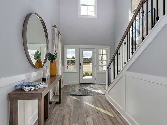 Coming May 2026--the Warwick II in Hewing Farms! This 5-bedroom home offers a first-floor guest suite and an open family room with a gas fireplace that flows into a gourmet kitchen featuring under-cabinet lighting, upgraded finishes, wood flooring, and a stunning oversized island perfect for cooking and entertaining. Upstairs, the expansive primary suite boasts a spa-like bath with dual shower heads and upgraded tile, plus a large loft and three additional bedrooms for flexible living. Enjoy outdoor living on the covered back porch and take advantage of Hewing Farms' resort-style amenities--pool, cabana, playground, putting green, pavilion, and fire pit--just minutes from Carnes Crossroads and Nexton Square.