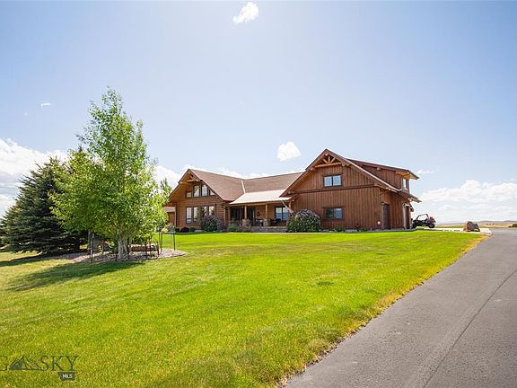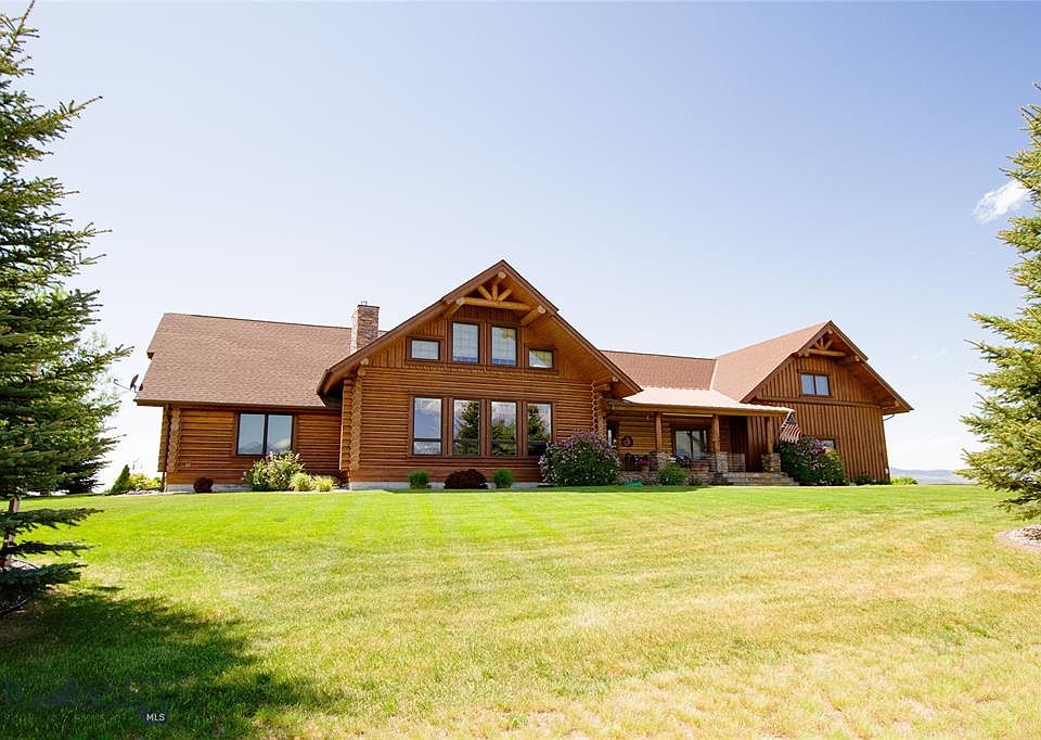 The iconic log architecture of the American West is rebooted to 21st century living with this fabulous custom home, perched on 1.77AC. Peaceful, quiet living in this captivating, luxurious home. Oversized windows throughout, the generous covered front porch & covered back deck offer panoramic on top of the world views of four prominent Montana mountain ranges: Bridger Range (east), Gallatin Range (south), Spanish Peaks (southwest), & the Big Belt Mountains (north).The beautiful center room with the ledge stone fireplace is open to the spacious, gourmet, modern kitchen, featuring cherry cabinets, granite counters, double convection ovens & a massive island/prep/gathering area. Primarily 1 level living with the addition of a loft & a 1218 sf bonus room large enough for a private guest room) with a separate entrance. Feel like you are always on a vacation in this countryside atmosphere with unspoiled night skies. Only 10 minutes from Bozeman Airport The best of Montana Mountain Living.