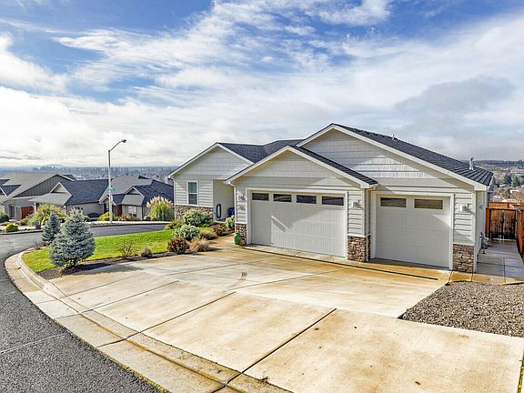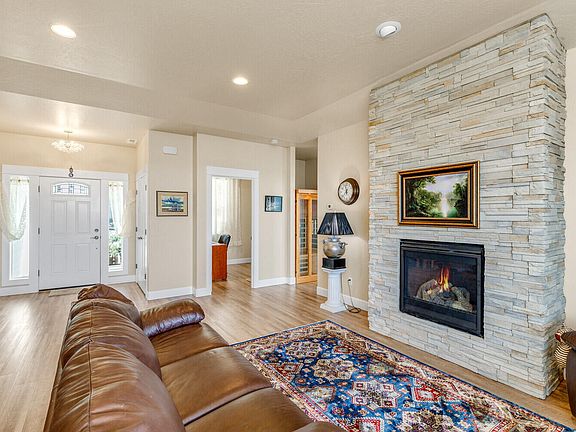 You won't believe the views! This stunning, single level, 3 bedroom, 2 bathroom, 1742 sq. ft. home is perfectly situated to capture panoramic views of the valley. Step inside to find vaulted ceilings, recessed lighting and beautiful vinyl plank flooring throughout. Cozy up by the gas fireplace and take in the scenery through the large windows. The open floor plan is bright and spacious. The kitchen is equipped with gas appliances, wood cabinets and granite countertops. The large laundry room includes a hanging rack and utility sink. Be pleased to find a separate office/den area separate from the sizable bedrooms. The master bedroom has ample natural light and an en suite with walk in shower, lots of storage and oversized walk in closet. Access the back deck from the sliding glass doors in the dining area or via the set of stairs in the backyard. The large backyard has a paved patio area with a fire pit and is set up for entertaining. This home is ready for your special touch