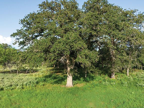 Rolling terrain, scattered with majestic post oaks and live oaks, frames picturesque homesites and sweeping views. A productive coastal Bermuda hay field enhances the ranch’s agricultural value.