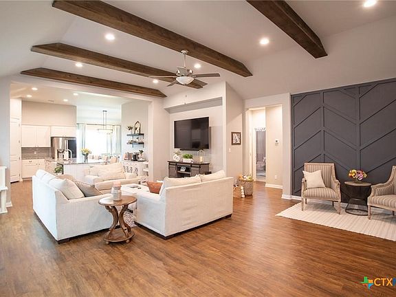 - Beamed Ceilings, Breakfast Bar, Ceiling Fan(s), Dining Area, Separate/Formal Dining Room, Double Vanity, High Ceilings, Pull Down Attic Stairs, Split Bedrooms, Smart Home, Smart Thermostat, Walk-In Closet(s), Breakfast Area, Custom Cabinets, Granite Counters, Kitchen Island, Kitchen/Dining Combo, Pantry, Solid Surface Counters