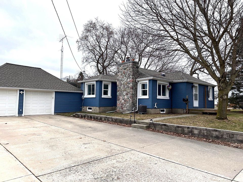 Beautiful ranch style home that is move-in ready condition! Home features newer roof, windows, siding, deck, patio, furnace, central air, water heater, kitchen, bathroom, garage, electrical and more! 2.5 car detached garage (22x30), a new second garage (16x22) and large concrete driveway! Fenced back yard, patio, deck, full basement that features a family room, second bath and 3rd bedroom with egress window! Hickory floors in the living room and 2 bedrooms! Main bath features a custom tile shower and built-in storage. Living room had a fireplace and sellers removed the mantel and sealed it off (north wall). Kitchen features beautiful new cabinets with soft close drawers and doors, quartz counter tops and stainless steel appliances. This home has great windows that allow lots of natural lighting throughout! Corner lot, mature trees and great location to downtown and highway access. This home also has access to Thompson Lake and park.