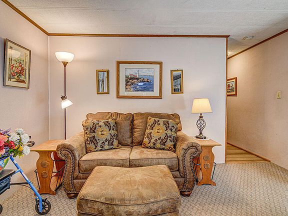 Darling corner lot mobile in the Table Rock Acres Subdivision. This cute 2 bedroom and 1 bath with garden tub would be a perfect place for permanent residence or long term rental. This property features a 2 car carport, fenced in backyard and a sweet 8x12 tool shed and a bonus ramp for an easy walk-in access to the front deck and front door. Spacious dining/kitchen area. New water heater 2022. Come check out this potential property nestled away in Branson.