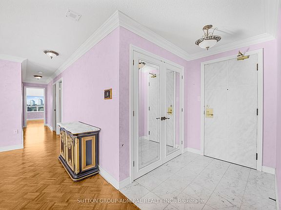 Rare opportunity for a bright corner suite 1738 sq ft in the high demand The Conservatory with amazing south, west and north views.Walkouts from the family-sized kitchen, living room and solarium to a large balcony with a clear unobstructed view of the CN Tower.Ideal for large family gatherings, the spacious rooms offer great flow and space. All ready for a personal touch.The sun-filled solarium adjacent to the living room can be easily converted to a private office, den or guest space.The spacious primary bedroom features a 4 piece ensuite and a customized walk-in closet.Highlights of the 2nd bedroom include a built-in wall unit, large closet and unobstructed west view.There is crown moulding and rich parquet flooring throughout.The oversized laundry room is complete with a laundry tub, cabinets,built in storage and a wall to wall closet.Tandem parking for 2 cars is steps to the elevator.The Conservatory is well known as a community. It is located close to the Sobey's plaza, public transit, the community centre, synagogues and more.Outstanding amenities include gatehouse security, indoor pool, guest suites, gym, squash & racquetball courts, billiard & ping pong,library, party room , Sabbath elevator, gazebo and beautifull landscaping. Maintenance includes all utilities as well as cable and phone. This is an estate sale with no seller warranties. The closing is flexible.