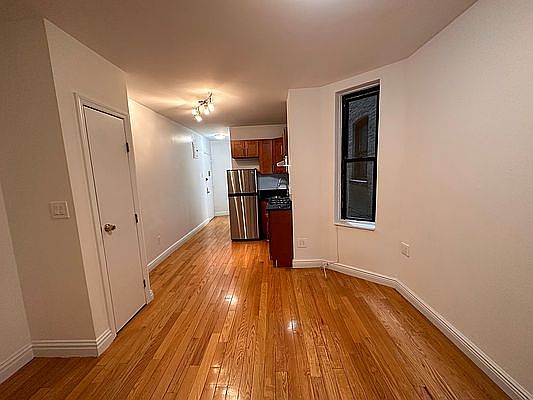 This charming, rent-stabilized, one-bedroom, one-bath apartment is move-in ready and waiting for your personal touch. Located on the 2nd floor, it's a quick walk up! With hardwood floors throughout, you enter the apartment with a long hallway (9.7 x 3.25) leading to the kitchen and bedroom. Directly ahead is your bathroom, which measures 4.75 x 7 and is light and bright. In the eat-in kitchen (13.5 x 11.25), there are lots of cabinets, plus your stainless steel GE fridge, 4 burner gas stove/oven, and stainless steel sink. Plus, you have a pantry for lots of storage. Then there's the bedroom, which has two large windows and is big enough for a queen-sized bed, measuring 8.25 x 10.5', and a large closet. There is a live-in super, and Spectrum is the cable/internet provider. A yearly income of $94,000 or more and a credit score of 700 or higher qualifies you. As an alternative, the landlord accepts INSURENT to get you approved as your guarantor. Sorry, no co-signers or personal guarantors. At lease signing, you'll pay the first month's rent, one month's security, and one month's broker's fee. Sorry, no pets. The location is perfect, as you can catch the F, N, Q, R and 6 trains nearby. Gristedes is on the corner of First and 65th, Morton Williams is on 3rd and 64th, and Trader Joes is on 59th and First. Tons of restaurants surround you as well as all of your favorite shops. Laundromats are on 63rd and 70th and St. Catherine's Park is close by and Central Park is just a few blocks to the west!