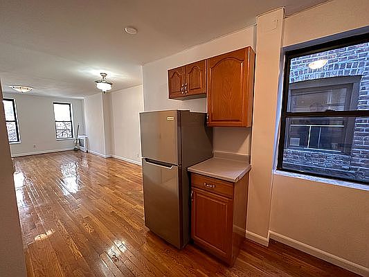 This charming, rent-stabilized, oversized studio, one-bath apartment is move-in ready and waiting for your personal touch. Located on the 5th floor, it's a quick walk up. Sorry, no elevator. With hardwood floors throughout, you enter the apartment into your kitchen, which measures 9.25' x 8.25'. There are lots of cabinets, a brand new fridge and 4 burner gas stove/oven, and a deep stainless steel sink. To your left is the bathroom, which is 5' x 7', sparkling clean, with a shower and bathtub. The living room has hardwood floors and measures 11' x 9', is wired for cable, and has a large closet. Then there's the bedroom area, which has three large windows and is big enough for a queen or king-sized bed, measuring 13.25 x 11'. There is a live-in super and Spectrum is the cable/internet provider. Yearly income of $86,840 or more and a credit score of 700 or higher qualifies you. As an alternative, the landlord accepts INSURENT to get you approved as your guarantor. Sorry, no personal guarantors. At lease signing, you'll pay the first month's rent, one month's security, and the broker's fee which equals one month's rent. Sorry, no pets. The location is perfect, as you can catch the F, N, Q, R and 6 trains nearby. Gristedes is on the corner of First and 65th, Morton Williams is on 3rd and 64th, and Trader Joes is on 59th and First. Tons of restaurants surround you as well as all of your favorite shops. Laundromats are right on the block and St. Catherine's Park is close by and Central Park is just a few blocks to the west! Watch the detailed virtual tour, then email or text your questions to set up your in-person tour!