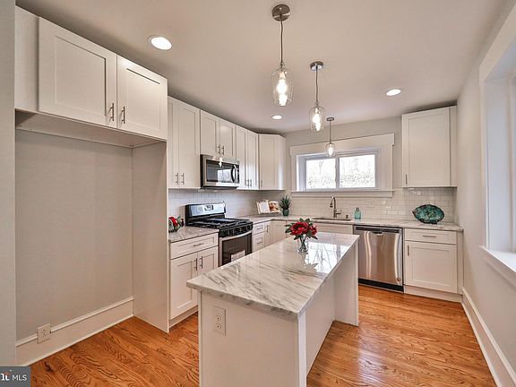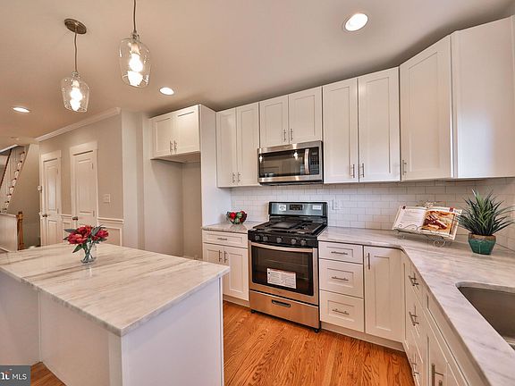 Don't Pass up the Opportunity to Own this Move In Ready Home that has been completely Renovated. Location is Key, this home is in a terrific section of Philadelphia! Enter in to a Gorgeous Open Living Room with Bright Natural light, Hardwood Floors and recessed lighting that flows perfectly into the Beautiful Kitchen, highlighted by white shaker cabinets, quartzite counters, subway tile backsplash, center island, and stainless steel appliances that truly complete the Elegant ambiance of the First Floor. Off the Kitchen is completed with an outdoor deck area. Notice the convenient first floor Powder Room. The Second floor features three Bedrooms and a newly renovated Bathroom to make this living space complete. Other highlights of this home include a finished Basement that would be perfect for a Playroom, home office or Family room. Includes Basement Laundry area and built in Garage! Brand New High Efficiency Gas Heater and Central Air system and NEW Hot Water heater, Gas cooking, vinyl replacement windows, fresh Paint throughout and the beautiful enclosed Front Porch. The convenience of the location and all of the upgrades make this home truly pristine, Put this on your List and book your appointment today!!