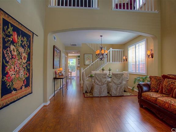 One of Costa Mesa's newer communities built by Richmond American Homes that features 4 bedrooms and over 2,200 square feet of living space and a loft as well! This Cape Cod inspired community was built in 2006, which means you'll find the latest building styles throughout, such as a great room style family room, along with amenities like an upstairs laundry room. As you walk inside, the formal living room will take your breath away, with the many upgrades throughout the first floor. Wood floors, plantation shutters and vaulted ceilings are just a few to look out for. The kitchen has been highly upgraded offering granite counters, travertine backsplash and plenty of counter space! The family room is generously sized showcasing the gas fireplace, wood flooring and neutral paint. Upstairs finds a master that has plenty of room for additional pieces, upgraded ceiling fan and plantation shutters as well. The master bath makes mornings a bit more bearable with a remodeled vanity, shower and lighting. The secondary bedrooms are perfect for that family needing a little more privacy with baseboards, neutral paint and plantation shutters. A private backyard perfect for entertaining is a nice feature too! Option to transfer to East Side Schools also available!