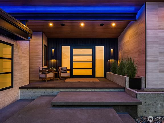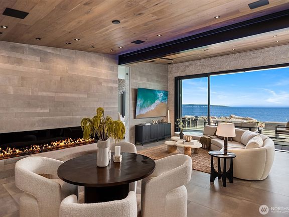 Exquisite coastal masterpiece blends cutting-edge design with the ultimate in waterfront luxury. (2 Bed+Flex rm.) Sits at the water's edge and framed by optional dual 20-foot firewalls, the home showcases natural stone, custom steel fabrication, and expansive Nano doors that open for seamless indoor-outdoor living. The State-of-the-Art kitchen offers Italian steel cabinetry, marble countertops, and a wall that opens to outdoor bar-perfect for entertaining. Rough-cut interior stone walls add depth and texture, while mood-enhancing LED-lit soffits illuminate the home at night as shipping lanes and sunsets unfold before you. Primary suite opens fully to the expansive patio, and the spa bath stuns with floor to ceiling marble and glass closets.