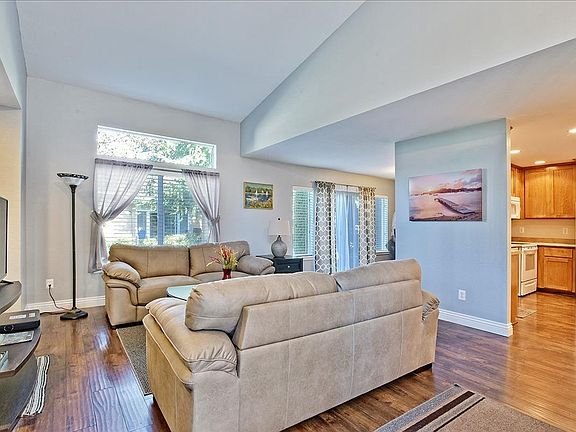 Tastefully updated Craftsman style townhome in quaint Central Point East! Beautiful wood-look laminate flooring throughout the downstairs with fresh interior paint and custom baseboards. This home features cathedral ceilings in the light and bright great room, open to the kitchen and dining room. Wonderful architectural details in this charming home. Curved archway to view dining room from kitchen. Living room with alcove for your big screen TV. Large pantry, bedroom/office and half bath downstairs. Attractive banisters with angled staircase and landing. Upstairs boasts two large Master Suites, one with walk-in closet and sitting area with new carpet throughout. Laundry is conveniently located upstairs. Perfect for a couple or a family looking for a low maintenance, move-in ready home! The HOA covers exterior maintenance and landscaping. 2 car attached garage. Walking distance to the neighborhood park. Pride of ownership is evident in this beautifully maintained home!