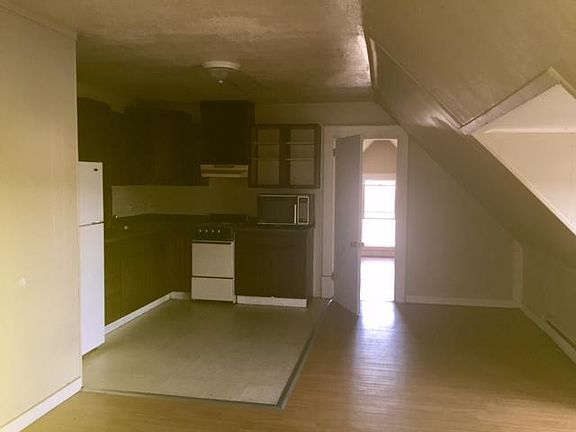 1-2 bedroom apartment. 3rd floor. Updated kitchen. Stove, Refrigerator and Microwave and A/C unit provided. Hardwood floors. Balcony.