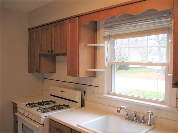 Freshly painted, move-in ready 2-3 bedroom, 1 bath ranch home on full, partially finished basement. Like new carpets in living room and both bedrooms. Kitchen has lovely cabinets, pantry and tile backsplash behind sink and stove. Both stove and refrigerator remain with the property. Updates in bath include ceramic tile around tub and on floor. Whole house fan to keep the air flowing throughout the home. Blinds/shades on all windows. Basement is partially finished with potential for 3rd bedroom and rec room. Washer and dryer included. Large fenced-in yard with patio, 1-1/2 car garage and storage shed. Roof on home is approximately 3 years old, boiler is 8 years old. Extra insulation added to attic. Seller also had Leaf Guard installed on gutters. Don't miss the opportunity to live in this lovely home in a great neighborhood. Close to school, park and shopping.