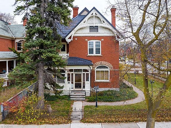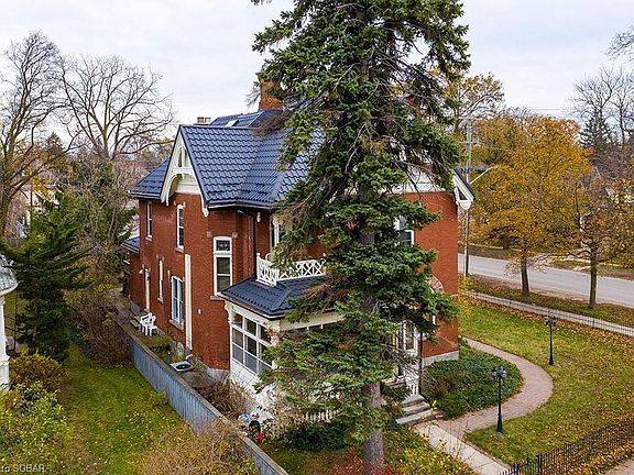 Olde Town Collingwood, This Stately Queen Anne Revival Style home was built in 1893. Features lots of stunning original gingerbread trim, stain glass windows, charming rod iron fencing, large rooms with high ceilings, steel roof is only 2yrs.This spacious home has 2 Kitchens & 5 Bathrooms just Perfect for the Family that loves to Ski, only mins to Blue Mountain Village & a number of area Private Ski clubs. Steps to Collingwood's main shopping/restaurant area. Many Possibilities exist with this Stately Home.