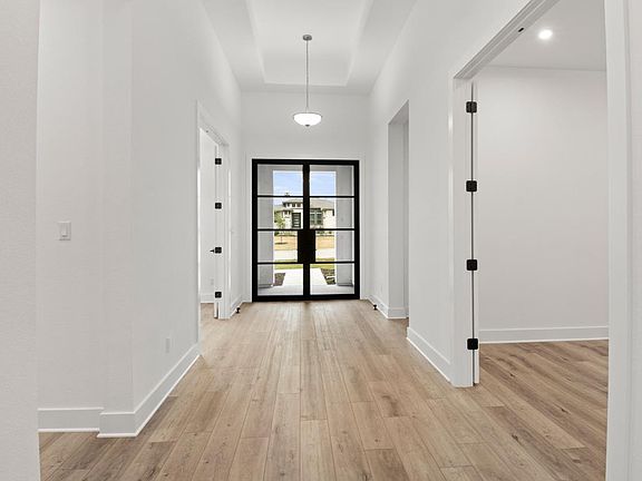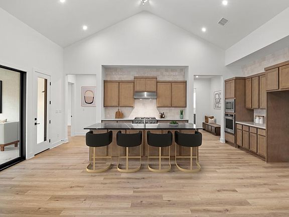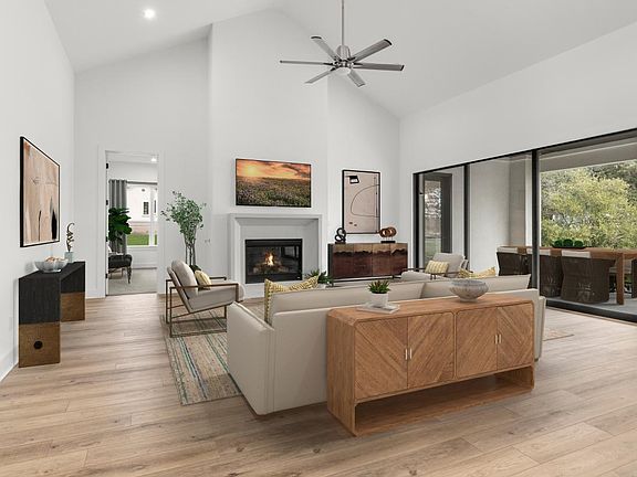 The Treaty Oak Transitional is a spacious single-story home filled with everything you need all on one floor. The beautiful covered front porch and upgraded double-door entry boasts curb appeal. The elongated foyer is accentuated with a lovey tray ceiling. The spacious office with double-door entry is the ideal place for remote work. Two generous bedrooms with a shared Hollywood-style bath include walk-in closets. Guests will appreciate the bedroom with a full bath and walk-in closet just across from the media room. The open great room has a stunning exposed beamed ceiling that joins the casual dining area to the kitchen with center island. Multi-slide doors open from the great room to the covered patio adding additional living space. A luxurious primary bedroom suite is enhanced with a tray ceiling and includes a gorgeous resort-style bath with a freestanding tub as the focal point. Additional highlights include a generous 3-car garage, workspace, powder room, and drop zone at the everyday entry. This amazing home is close to premium shopping, dining and entertainment and in the highly-rated Dripping Springs school district. Come tour this home and community today. Disclaimer: Photos are images only and should not be relied upon to confirm applicable features.