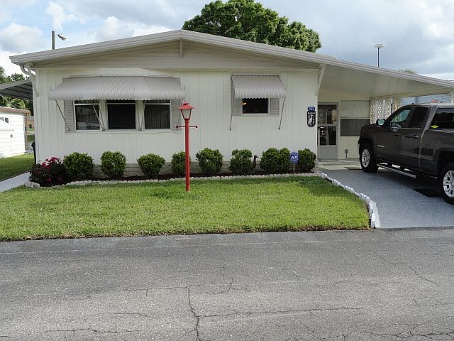 IMMACULATE UPGRADED FULLY FURNISHED 2br / 2ba. with PRIVATE WATER VIEW ! ! This is a MUST See if you want to move in with only your Clothes & tooth brush! - The Many upgrades include - - Completely New Kitchen Cabinets, Counter tops, & New Smooth top Range, & 2-door Fridge. - New laminate in Kitchen, Dining area, & Hallway. - Newer Berber Carpet in the Living & Bedrooms - All New Plumbing - Upgraded Sun room with Glass windows & Furniture - 11'x 15' - Expanded Shed & Laundry Room with storage, 11'x 14' & with door to Private Tiled back patio. - Freshly Painted Exterior Siding - Awnings on most windows - Custom Design newer painted Driveway. - 2 car parking - Metal Roof-Over The Kings & Queens Park is 55+ age; and has many amenities including a 3 min. walk to the Heated Pool and Club house, plus there is also an Exercise room and Billiard table for your enjoyment. There is all the Medical Offices, Shopping, and Restaurants within 5-8 min. and you can walk to The Detroit Tiger Stadium. Lakeland is situated in Central Fl. within 45 min to the Gulf Beaches & 50 min to Orlando and the Theme parks on I-4 Call Jerry Today to book your time to View this Exceptional "Available" Home & Make Plans your when to Move In. Jerry Walker -863-398-7551 Exit Realty of Lakeland