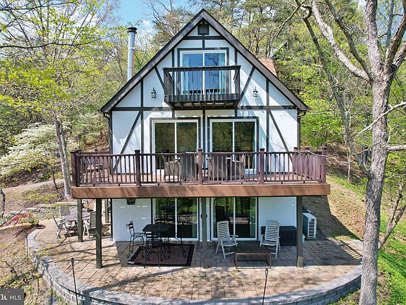 “Golf Retreat” ”Nestled in the scenic mountains overlooking the golf course at Bryce Resort, this stunning retreat offers breathtaking views year-round from all three levels. Thoughtfully designed for both relaxation and entertaining, the home features two outdoor decks and a custom terrace that partially wraps around the property, creating the perfect space to unwind or host guests. This well-maintained home has seen several recent updates, including a brand-new hot water heater, fresh exterior paint, and all-new sliding glass doors—five in total—that enhance both function and style. Inside, the open-concept kitchen boasts newer appliances, including a stove with an induction cooktop and convection oven, along with an updated backsplash that enhances both style and function. The breakfast counter, complemented by cozy barstools, provides a welcoming spot to enjoy appetizers while socializing. A dedicated coffee station adds a charming touch to the space. The main level hosts a spacious and bright bedroom with two closets, along with a full bathroom for convenience. The living room, complete with a wood-burning fireplace, seamlessly connects to the dining area, where large sliding doors open to the expansive deck. Upstairs, two generously sized bedrooms share a full bathroom, with one featuring a private balcony perfect for enjoying peaceful mornings. The lower level is a versatile space, ideal for an additional living area, home gym, or office, and includes a well-equipped workshop with ample storage. The laundry area is also conveniently located on this level. Stepping outside, the custom terrace offers yet another inviting space for entertainment, whether setting up hammocks for relaxation or gathering with friends. This home comes furnished and has been lovingly cared for, and it truly shows in its warmth, functionality, and attention to detail. Situated in a prime location, this mountain retreat is just moments from the resort, local restaurants, and a charming community store—making it an exceptional place to call home.