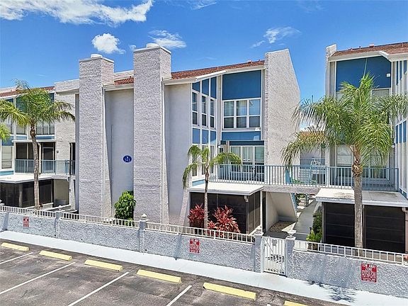 SELLER MOTIVATED! HUGE PRICE REDUCTION!! Great Value! * COMMUMNITY PASSED MILESTONE INSPECTION * * Tucked away in the Madeira Beach Yacht Club community, this two bedroom, one and a half bathroom upper level condo with a partial water view is simply a must see! Ready to rent (weekly rentals allowed) or ready for your personal enjoyment, the community amenities as well as proximity to the beach will make every day feel like a vacation! As you step inside you’ll be greeted by an abundance of natural light providing an open and airy feeling. The first floor features a nicely sized living area, a separate dining space, and a galley style kitchen with granite countertops and a wonderful amount of cabinetry for storage. A half bathroom along with a storage closet is also found on this level for maximum convenience. Journey upstairs and you’ll find an expansive primary suite along with a guest bedroom that overlooks the park and Intercoastal. A full bathroom with a shower/tub combo and washer/dryer are also located on this level. The well maintained grounds include two heated pools, a hot tub, four fishing piers with water and cleaning tables nearby, a carwash, and an electric car charging station. The clubhouse features a fitness center, kitchen, library, sauna, and game room. Right across the street is the municipal library and R. O. C park with tennis and pickleball courts, a splash pad, soccer fields, playground, basketball courts, baseball fields, a dog park and a path leading to the long pier overlooking the Intercoastal waterway. Included in the HOA are cable tv, internet, pool and ground maintenance, pest and termite control, sewer, water, trash, and an on-site community manager. Put it all together and you’ll see why this wonderful condo should be at the top of your list!